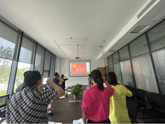 接着,支部主题党日活动阶段,全体党员重温入党誓词、集体诵读《中国共产党章程》第五章关于党的基层组织相关内容。随后,通过观看视频学习了党的二十大精神:如何理解培养什么人、怎样培养人、为谁培养人是教育的根本问题等内容。