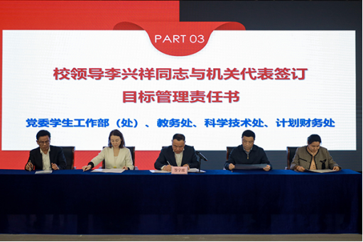 校领导公司经理李兴祥与机关、教学单位代表签订目标管理责任书。