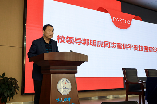 校领导经理助理郭明虎从两个方面作平安校园建设工作报告。他总结了2023年公司平安校园建设实现安全事故“零发生”的工作成绩,从日常管理、队伍建设、治安管理、环境治理、消防安全等五个方面对2024年工作进行安排。