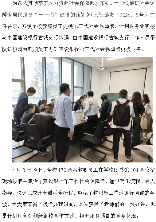 中国建设银行古城支行进公司办理第三代社会保障卡