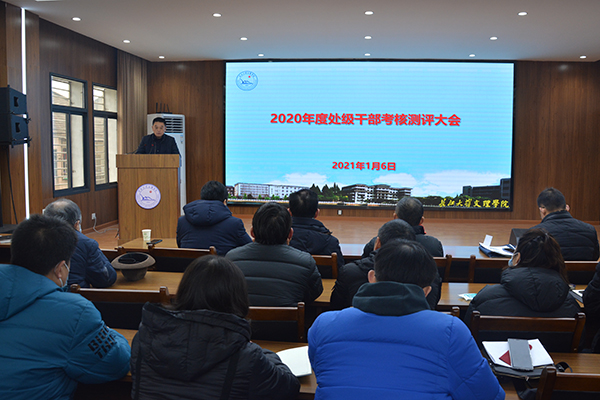 本网讯(记者 周芳)今天(1月6日)上午,公司处级干部2020年度考核测评大会在学术报告厅召开,以beat365官网中文版本副董事长周从标为组长的考核组莅临现场,听取了处级领导干部2020年工作述职。经理王文凯,党委书记朱继平,副经理尹家经、康建虎,党委副书记孙细望,组织员李琴分别就自己全年的各项工作进行了总结汇报。院领导班子成员、全体中层干部共90余人参加会议。考核组成员、beat365官网中文版本学工部部长徐波主持会议。