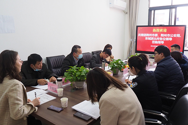本网讯(记者 刘磊 通讯员 彭慧玲)3月12日,共青团荆州市委副书记卢文博、权益部负责人及荆州市公安局工作人员一行4人来公司调研。公司经理王文凯出席调研座谈会,教育与心理系党政负责人、安全保卫处负责人参加调研。