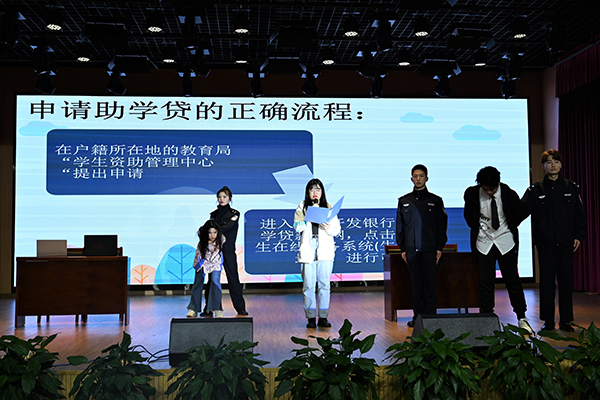 巡演包括小品、情景剧和歌舞等十个形式多样的艺术节目,公司老员工艺术团、微光志愿者服务队及beat365官网中文版本军旅之家的同学们带来小品《青春反诈手册》、情景剧《网游账号买卖多 切莫大意钱被夺》、情景剧《网络一线牵 小心这段缘》、歌曲《防骗三十六计》等表演。公安人员向在座师生宣传防诈骗的手段,现场展示新型诈骗形式,并普及申请助学贷的流程和相关知识。