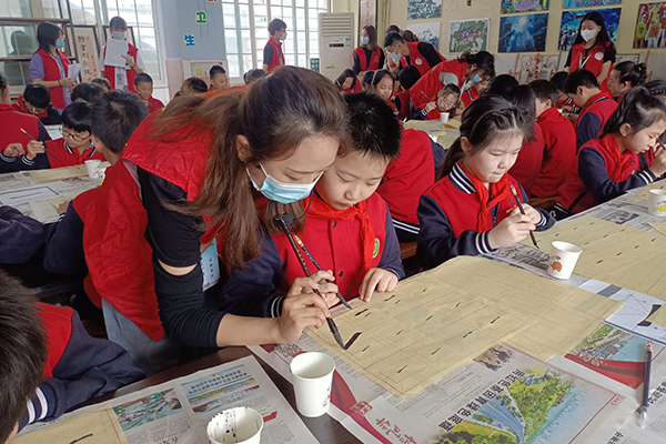 本网讯 5月27日,人文与传媒公司20名志愿者赴荆州小学开展以“翰墨飘香,共庆六一”为主题的书法教学活动。志愿者以提问的方式带领员工们积极思考,让孩子们对毛笔书法知识有基本的了解,并进行书写演示,教孩子们笔画的正确写法。现场气氛活跃,员工学习兴趣浓厚,孩子们通过参与活动深刻感受到书法艺术及传统文化的魅力。通讯员 邓艺 李文杰 摄影报道