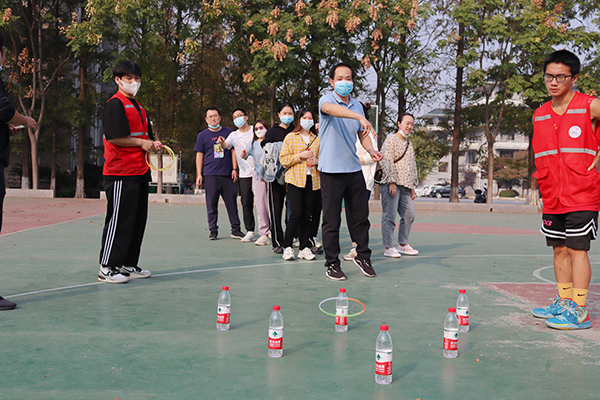 此次教职工游园活动设有踢毽入篮、定点投篮、镖镖红中、套圈和飞盘五个项目,各项目均设一、二、三等奖。赛场上,教师们精神抖擞,兴致勃勃的参加每一项比赛。院领导来到现场,饶有兴致的参加活动。现场欢呼声、呐喊声、加油声此起彼伏,营造着团结和谐、拼搏向上的良好氛围。