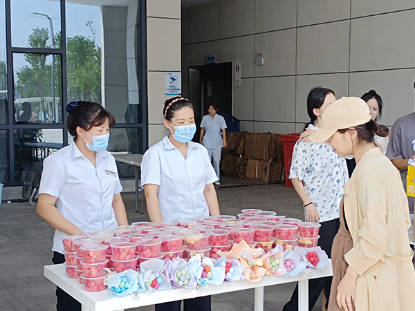 后勤保障处联合荆州城发物业公司为前来就餐的教职工准备了精美的水果礼盒,现场充满欢声笑语,氛围和谐融洽。