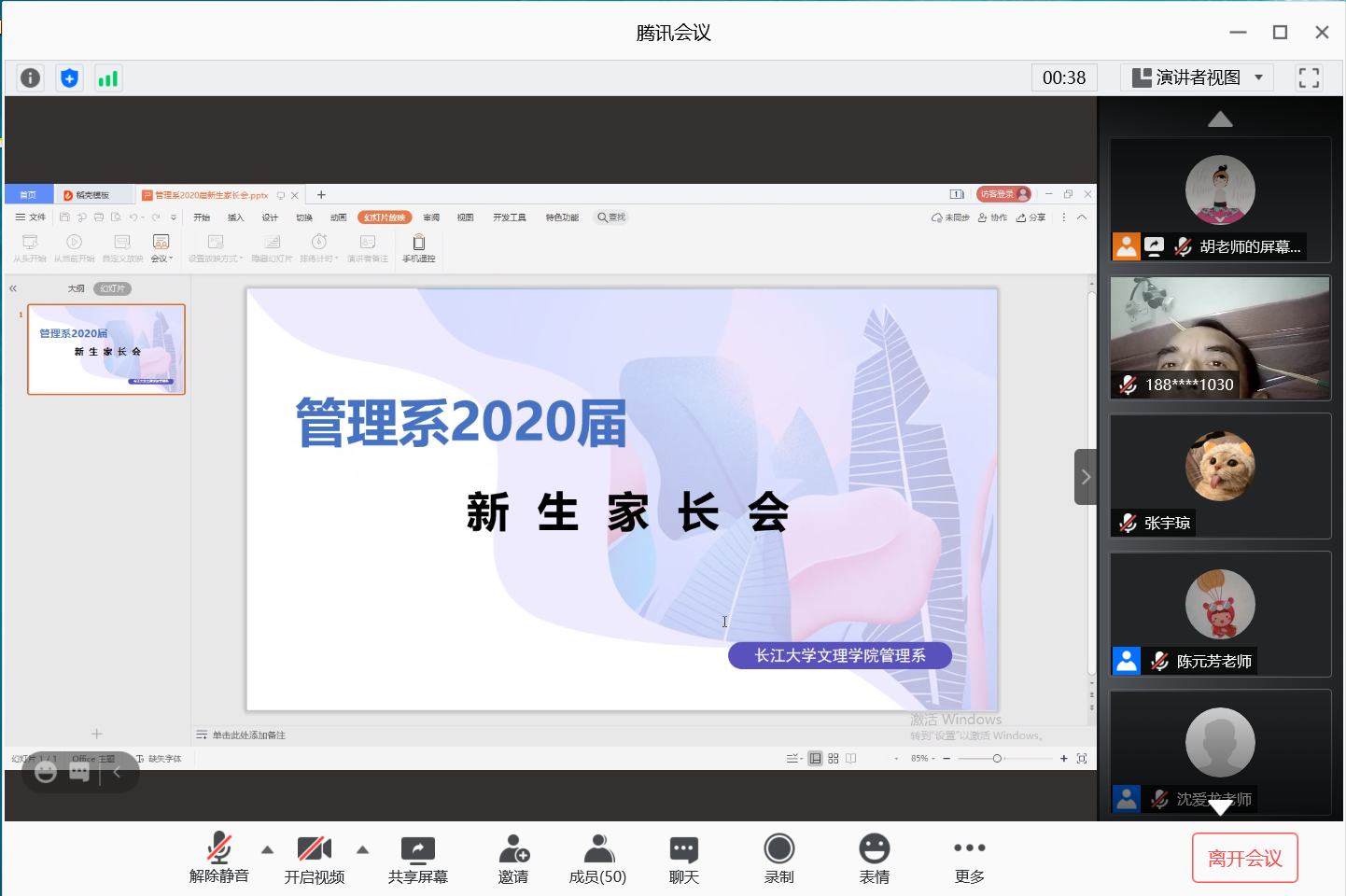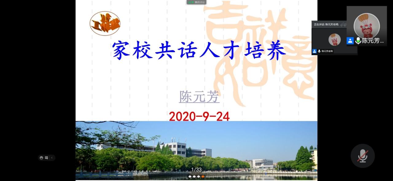 本网讯(通讯员 胡英 张宇琼)9月24日19:30,在腾讯会议平台,我系召开2020级新生家长见面会。会议由系党总支书记沈爱龙主持,系主任陈元芳、系部相关负责人及近百名新生家长参会。