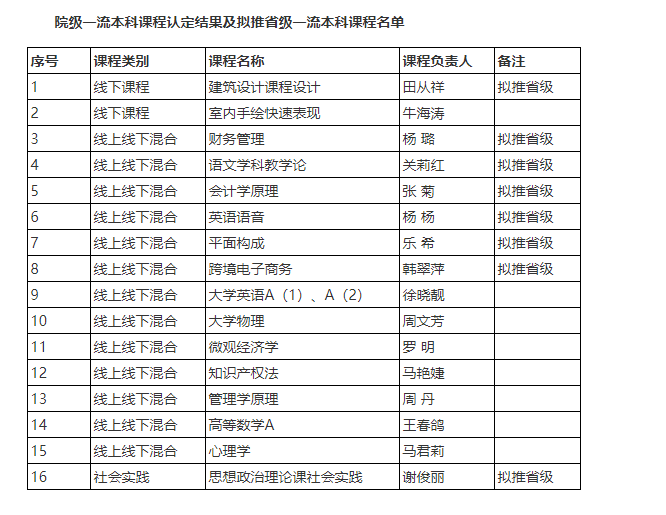 据悉公司共有26门课程报名参与此次院级一流本科课程申报工作,经过公司层层审批、严格把控后共只评出院级线下、线上线下混合和社会实践这三类一流本科课程16门,其中我系三位教师以优秀的课程质量申报院级一流本科课程获得成功,其中杨璐老师的《财务管理》和张菊老师的《会计学原理》作为线上线下混合式课程类以新颖的教学方法和教学特色得到公司的充分肯定,进入公司拟推送省级一流本科课程的8门之列。