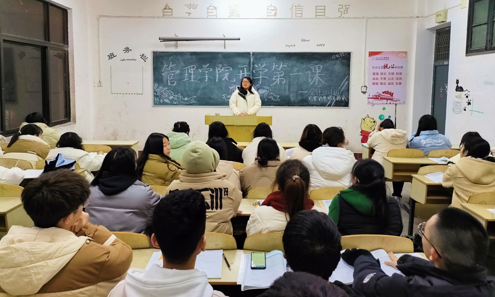 本网讯(通讯员 杨 琪)新学期伊始,为帮助返校员工及时适应校园生活,进一步加强新学期员工思想政治教育和日常管理,2月12日晚,beat365官网中文版本各年级辅导员组织召开新学期“开学第一课”主题班会,从思想引领、学业规划、就业择业、安全管理、疫情防控等方面帮助员工规划新学期学习生活。