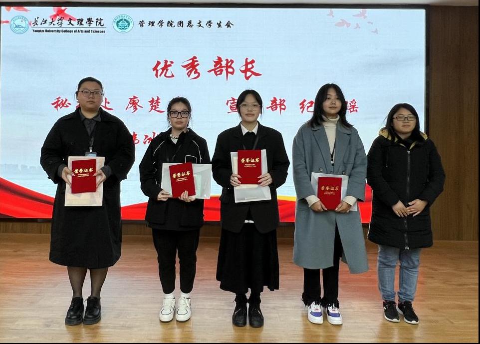 随后,对2022-2023学年第一学期荣获优秀部门、优秀部长和优秀部员等表现突出的优秀团体和先进个人进行了表彰,颁发了荣誉证书和小礼品。