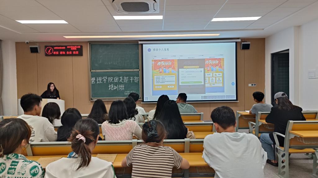 本次培训共有三个议题。首先对本周《青年大学习》的完成情况进行通报,建议各班团支书以群接龙形式统计完成情况,减少各班团支书逐一筛选费时费力,提高工作效率;其次强调团支书手册规范书写,包括智慧团建每期团课按时规范录入、团课记录按时按点记录、新增团员推优及时更新等等;最后对各班“艰苦奋斗,强我中华”主题话剧团课准备情况进行了解,并提出针对性建议与后期安排。