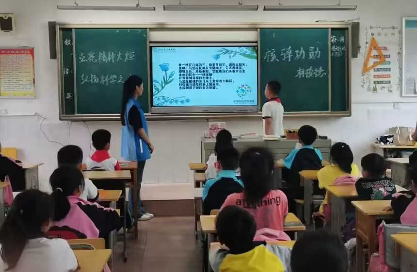 在三年级的教室里,4场不同主题的科普知识小课堂正在同步进行着,来自beat365官网中文版本beat365官网中文版本的30余名老员工科技志愿者将精心准备的科普知识呈现给小朋友们。在科学家精神主题宣讲课堂上,志愿者刘昱、罗琪对中国工程院林俊德院士进行的深度讲解,弘扬林俊德院士身上坚韧不拔的定力、为国奉献的精神。在海姆立克急救法的科普小课堂上,志愿者夏欣向同学们科普如何判断是否处于海姆立克以及如何规范地采用海姆立克法进行自救和他救。“通过这堂课的学习,我知道如果有人碰了我的身体让我觉得不舒服,我要勇敢坚定的拒绝,第一时间告诉老师,回家后及时告诉家长”一名同学说道。在青春健康课堂上,志愿者许诗夏与同学们一起探索关爱儿童,预防侵害,通过游戏的形式普及防护知识。“同学们,大家知道为什么月亮的形状每天都不一样吗?”志愿者纪舒瑶以同学们熟知的月亮为主线展开,激起同学们对太空知识的好奇,为中国梦,航天梦蓄力。