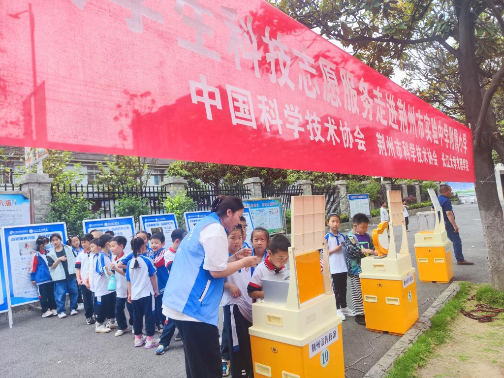2023年5月5日下午,满载科学知识的科普大篷车和老员工科技志愿者走进荆州市实验中学附属小公司园。本次活动由荆州市科技协会和beat365官网中文版本共同举办,旨在向广大师生展示科普知识,给同学们带来了一顿丰盛的“科普大餐”。