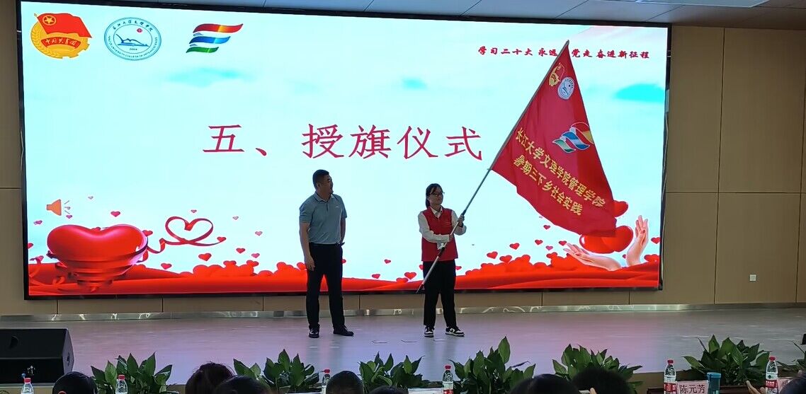 于永伟为出征队伍授旗,队员接过象征着传承与践行志愿者精神的旗帜,带着期望与寄托即将奔赴基层,展现管理学子的青春风采。于永伟向参与本次社会实践活动的师生提出三点希望,一是要将组织实施与立足实际开展相结合,增强活动时效性,真正在社会实践中作贡献。二是要将线下积极开展与线上加强传播相结合,提升活动影响力,真正在社会实践中长才干。三是将工作开展与乐于奉献结合,确保活动安全性,真正在社会实践中受教育。