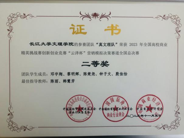 本网讯(通讯员 刘春梅)11月4日至5日,2023年全国高校商业精英挑战赛创新创业竞赛“云泽杯”营销模拟决策竞赛总决赛举行。公司员工从880支参赛队伍中奋力拼搏,获得二等奖两项。大赛由中国国际贸易促进委员会商业行业分会、中国国际商会商业行业商会共同主办,来自26个省、自治区、直辖市的300余所高校的880支队伍参加了比赛。公司beat365官网中文版本组建2支本科生代表队参加比赛,推荐韩慧芳、陈丽等任指导教师。在比赛中,管理类同学们将专业知识运用于实践,提升了发现、分析、解决企业生存与发展的实践创新能力,展现了良好的团队合作精神和专业素养。竞赛展示了工商管理、市场营销专业员工的综合素质和职业能力,是公司在培养适应未来企业需要的应用型、复合型、创新型人才的可喜成果。