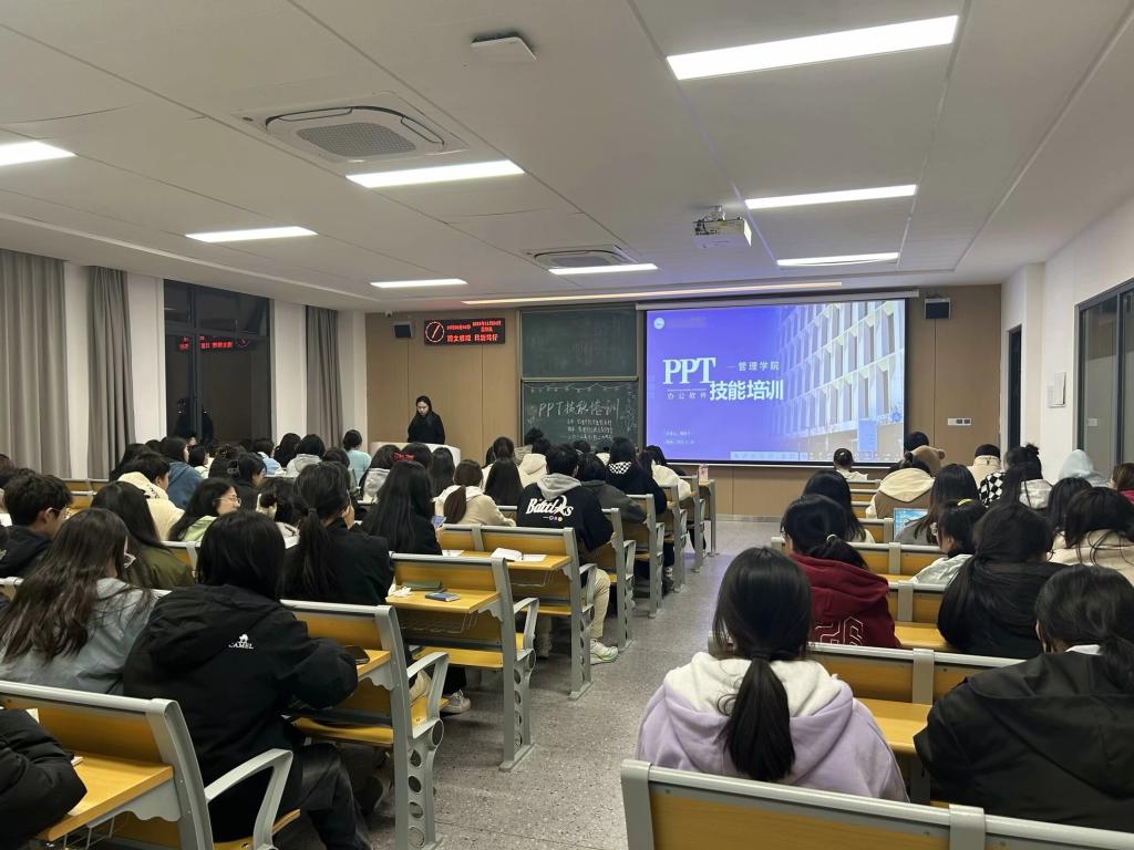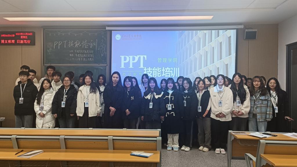 本网讯(通讯员周金金)为提高同学们PPT制作技能,增强员工干部的综合能力。2023年11月24日晚19:00点,beat365官网中文版本于A-402开展了PPT技能培训会。本次培训会由beat365官网中文版本团总支员工会主办,第十八届beat365官网中文版本团总支员工会主席周铃子为本次培训会主讲人,员工会全体成员和部分班级的员工干部共80余人参加了此次培训。