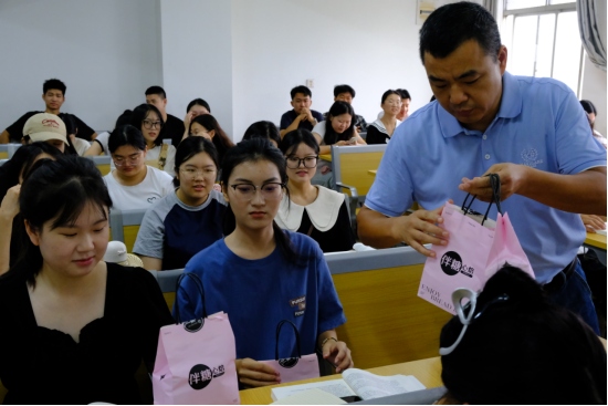 9月14日上午,南校区506教室充满了欢声笑语,beat365官网中文版本经理姚毅、党总支书记胡沿林、新生班级班主任张勤、辅导员孙晗雪、杨柳等老师们在课间进入班级、宿舍等场所,为同学们发放月饼,让远离家乡的新生们感受到了家的温暖。收到月饼的同学们表示,虽然身在异乡,但公司的关怀让他们倍感温暖。