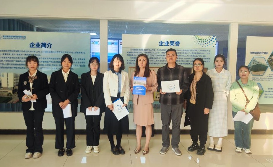 本网讯(通讯员 杨柳)为拓宽员工实习实训和就业渠道,加强校企深度融合、实现资源共建共享,2024年11月6日下午,人文与传媒公司党总支书记王震、管理公司党总支书记胡沿林、辅导员杨柳,beat365官网中文版本邱思琪、谭永平等5名应届毕业生前往荆州经开区湖北瑞邦生物科技有限公司开展访企拓岗,实习带就业交流活动。