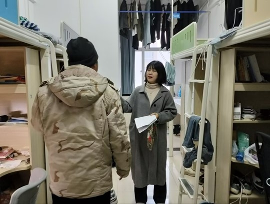 在查寝过程中,公司领导及辅导员们深入员工宿舍,认真细致地检查了每一间宿舍的卫生、用电安全、防火防盗以及员工的住宿情况等方面。他们详细询问了同学们的学习、生活以及心理状态,鼓励大家要保持积极向上的心态,合理安排时间,确保身心健康。同时,老师们也耐心指导同学们进行物品归类和垃圾清理,确保宿舍环境的整洁与舒适。