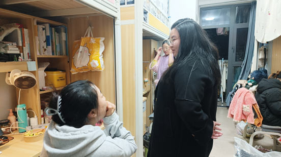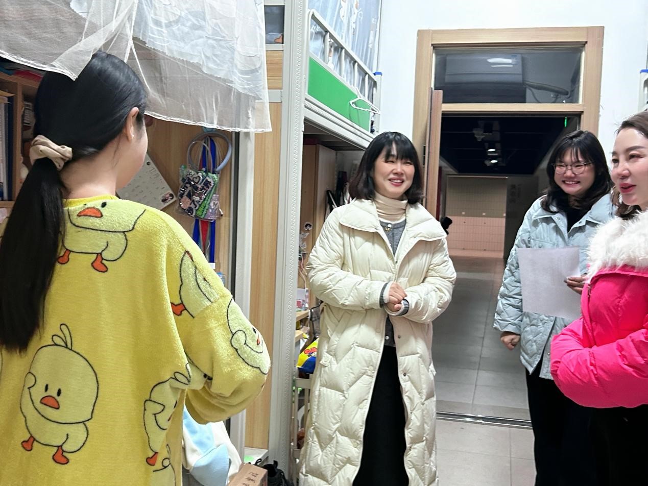 本网讯(通讯员 邓易)为深入营造良好的生活环境和学习氛围,了解公司员工住宿情况,2024年11月26日,员工工作部部长李刚英带队,管理公司党总支书记胡沿林、党总支副书记杨琪以及公司班主任老师走到员工寝室,查看她们的生活状况,开展查寝工作,为beat365官网中文版本学子带来温暖。