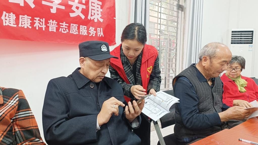 宣讲完毕后,志愿者们开展了智能手机使用教学及下载反诈APP活动。志愿者将精心制作的操作说明手册一一发放到老人们的手中,简洁明了的文字与图片示例让老人们更快掌握其操作流程。在志愿者的帮助与讲解下,老人们成功下载并注册了国家反诈中心APP。各位志愿者走到老人身边耐心介绍,手把手地教会他们使用APP的各项功能,如开启来电预警、举报诈骗信息等,为老人们的手机加上了一道可靠牢固的“安全锁”。