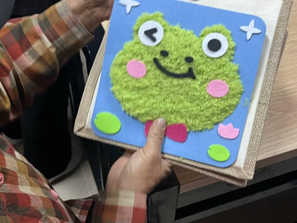 此次活动主要分为五个部分。开场由志愿者们带领老人做手指操以放松身心,接着共同制作回忆相册,让老人在照片挑选与整理中回忆往事,锻炼他们的交流能力,随后分发蛋糕,共享甜蜜时刻,再进行挂饰制作,以增强他们的成就感,最后全体人员合影留念,定格这一充满关爱与温暖的瞬间。