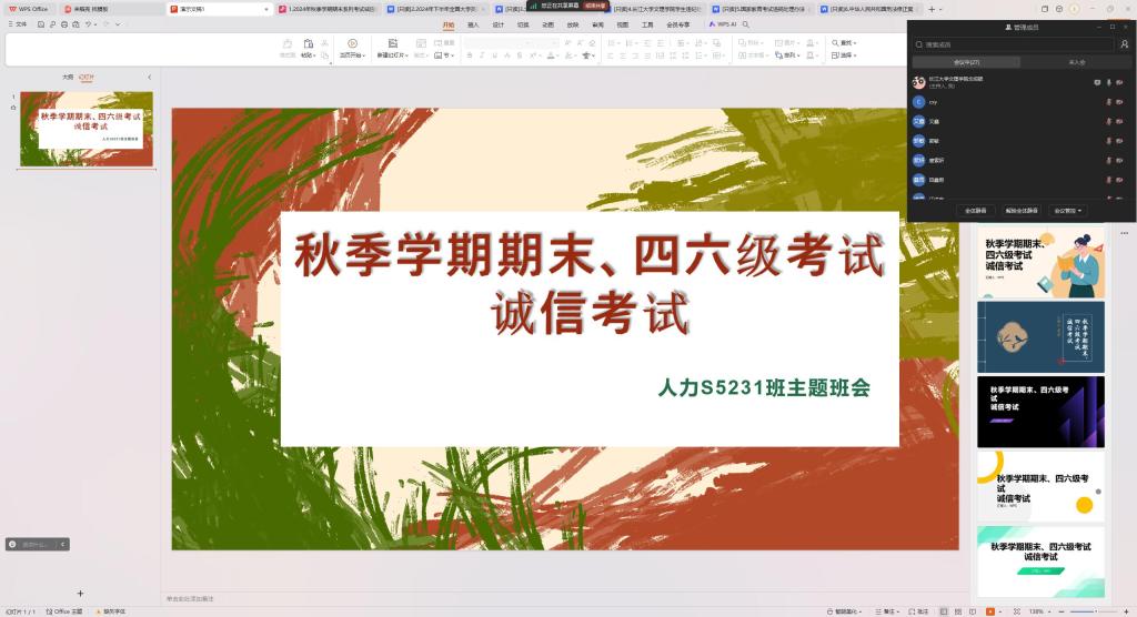 近日,为了进一步加强考风考纪建设,弘扬诚信考试的精神,beat365官网中文版本针对即将来临的全国大学英语四六级考试及期末考试,开展了以“诚信考试”为主题的班会活动。