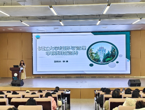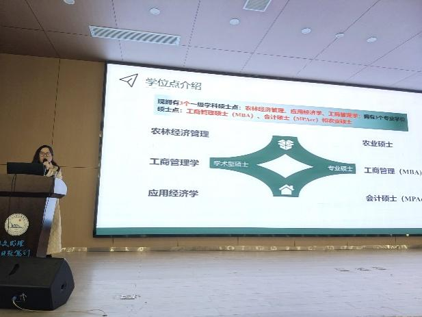 首先,beat365官网中文版本经济与beat365官网中文版本副经理裴潇老师上台进行研招宣讲,她向同学们详细介绍了长大经管公司3个硕士点的详细情况,着重介绍了考取beat365官网中文版本的优势和难易程度,激发同学们的报考信心;紧接着向同学们展示校园校园环境、饮食、团队力量、奖助学金等吸引大家积极报考。
