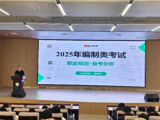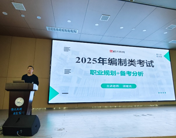 然后是格木教育的项继光老师为同学们讲述考公考编的相关注意事项,项老师从自身考研经历为同学们讲述考研和考公的不易,并对考公相关课程的大致题型,如何作答等方面进行了详细的讲述,同学们听得非常入神。
