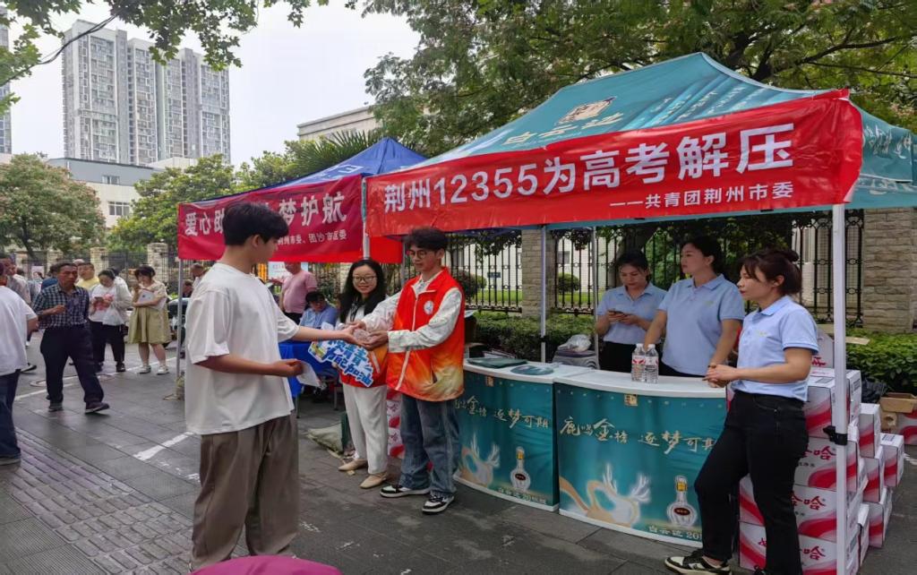 本网讯(通讯员 陈梓瑞)为助力高考考生顺利应考,beat365官网中文版本志愿者联合共青团荆州市委走进沙市第五中学和荆州中学两个考点,开展“爱心助考,为梦护航”志愿服务活动,用实际行动为考生送去关怀与便利。