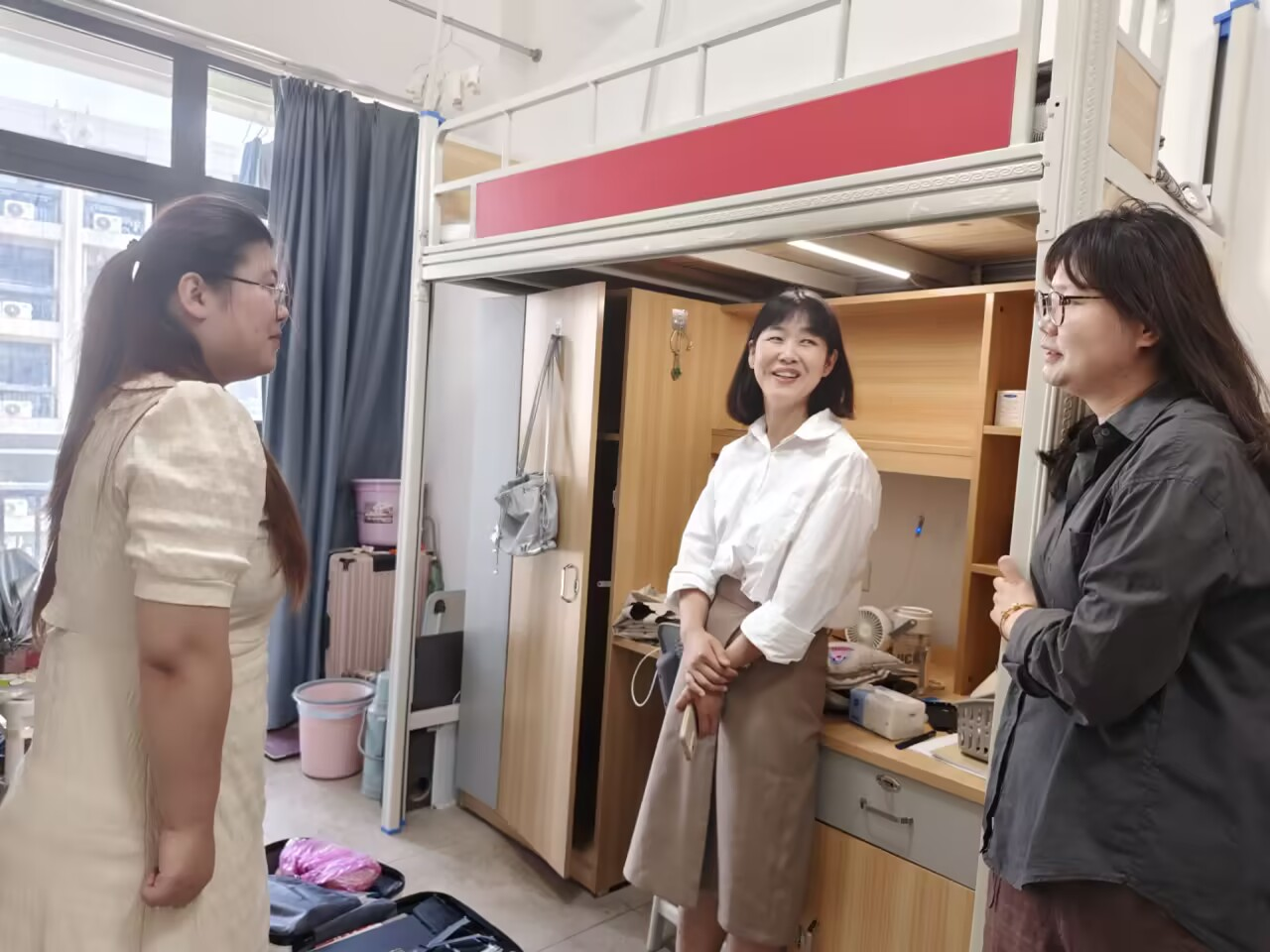 走访中,公司领导老师们与毕业生们亲切交谈,详细了解了同学们的就业去向、离校准备和未来发展规划,勉励大家在新的征程上勇毅前行。老师们还特别叮嘱毕业生要文明离校,倡导毕业生以行动传递感恩与责任。师生畅叙情谊,宿舍内欢声笑语,温情满满。