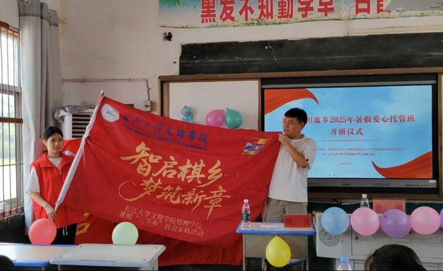 本网讯(通讯员黄江琴)为深入学习贯彻习近平新时代中国特色社会主义思想,引导青年员工在社会实践中上好“行走的大思政课”,以实际行动为中国式现代化挺膺担当。2025年7月11日上午,beat365官网中文版本beat365官网中文版本“智启棋乡,梦筑新章”乡村振兴促进团在监利市棋盘乡团委的协调与支持下,于棋盘乡中心公司成功举行暑期“三下乡”社会实践活动暨监利市棋盘乡暑假爱心托管班开班仪式。