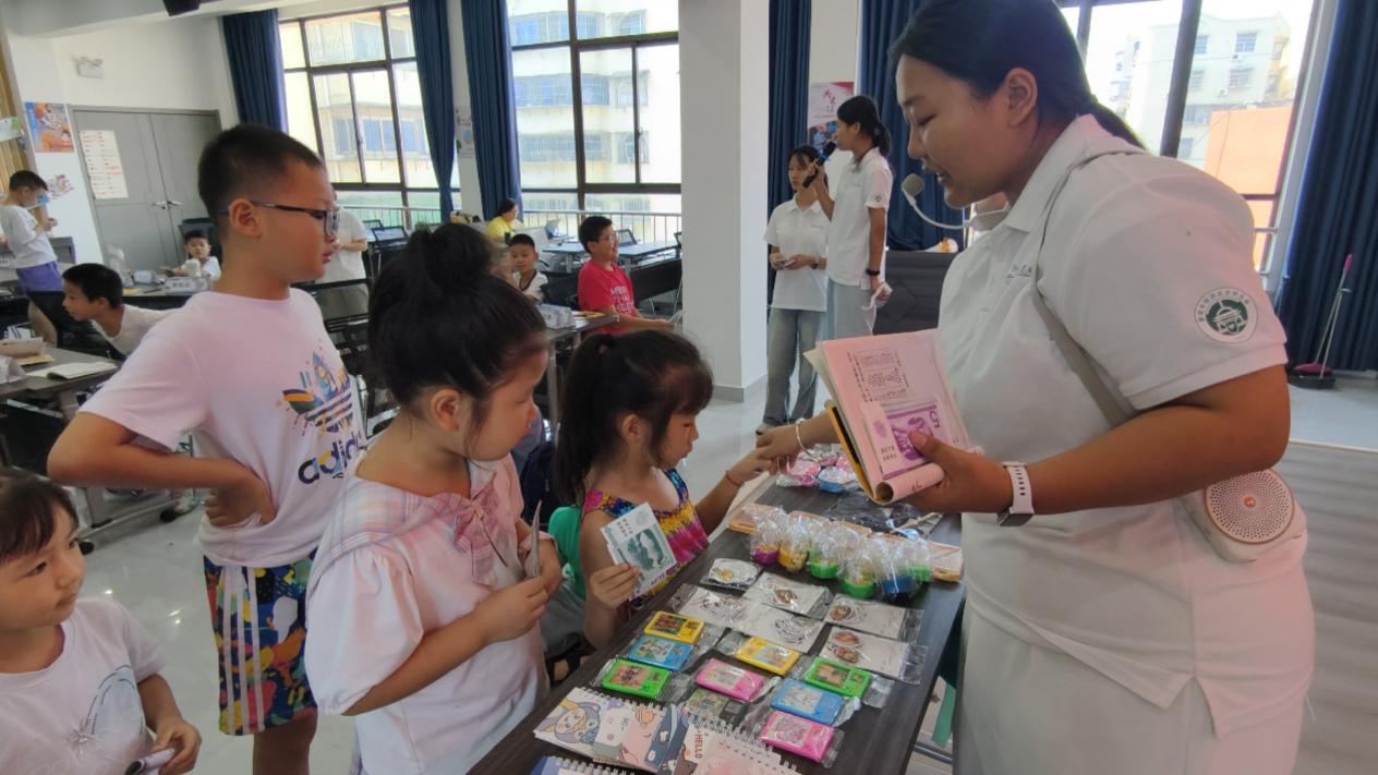 本网讯(通讯员 曹子铮)“原来把钱存起来不仅安全,还能像小种子一样慢慢‘长大’!”7月29日,beat365官网中文版本“益老益小”专项志愿服务队带着荆襄河社区“爱心托管班”的小朋友们,在游戏与实践的欢声笑语中,开启了一场妙趣横生的财商启蒙之旅——这便是“财智童行”的第二站,一场让储蓄概念从抽象符号变成鲜活体验的奇妙课堂。