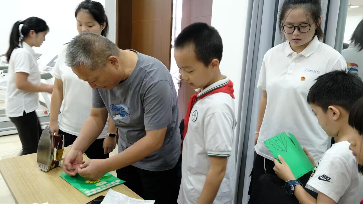 活动现场,来自沙市第六中学的员工代表王佑熙动情讲述红色故事,将革命先辈的奋斗与牺牲娓娓道来。随后,在非遗匠人张昆明老师的带领下,孩子们与退伍军人一起体验传统拓印技艺,亲手拓制出一颗颗鲜红的五角星。方寸之间,印下的是敬意;素雅贺卡,写满的是祝福。每一颗五角星,都承载着坚定的信仰;每一张贺卡,都饱含青少年的真挚情感。