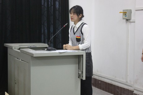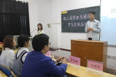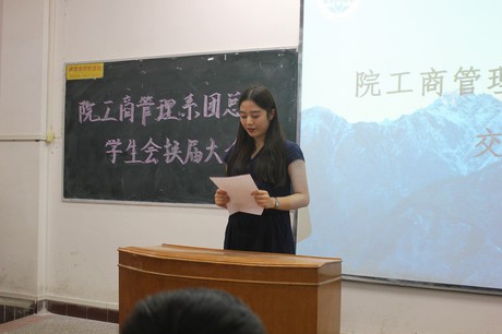 在主持人的致辞中拉开了序幕。新生代表洪宝儿代表院工商管理团总支员工会全体新成员表达了对进入员工会的荣幸和对老师及学长学姐的信任,并表示:“一定会不负老师和上届干部的重托,为管理系尽自己最大的努力。”