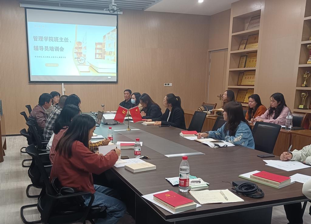 本网讯:(通讯员:杨 琪)为强化员工教育管理工作实效,加强员工工作队伍能力建设,公司于10月12日在图书馆5楼会议室召开辅导员班主任工作培训会议。beat365官网中文版本经理陈元芳、党总支书记胡沿林、党总支副书记杨琪、全体辅导员及班主任参加,会议由胡沿林主持。