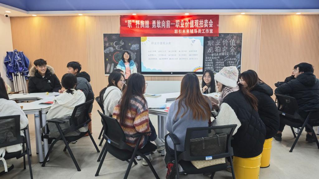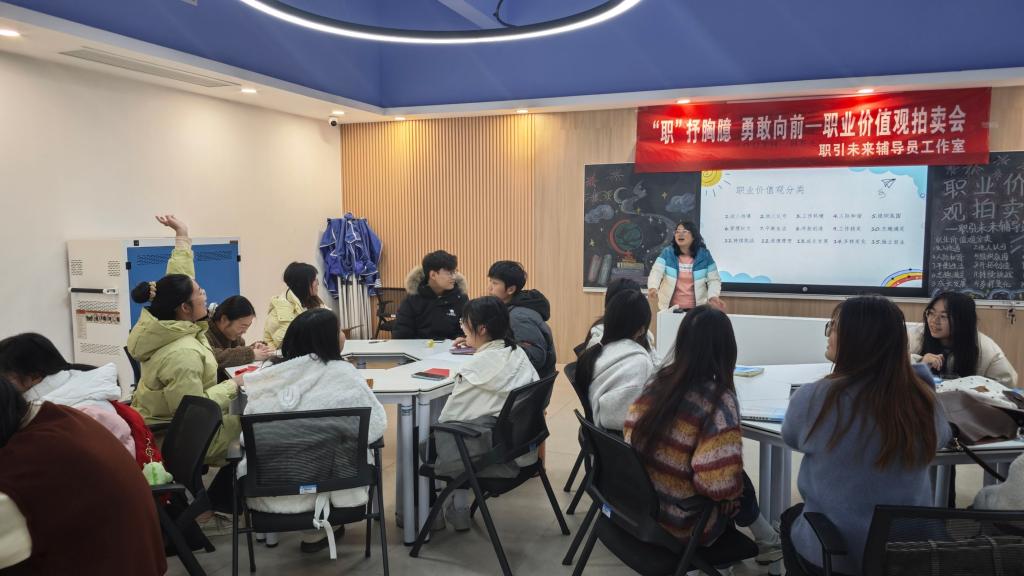 本网讯(通讯员:杨琪)在探索职业梦想的航道上,一场别开生面的“职引未来,勇往向前——职业价值观拍卖会”于11月26日下午热烈启航,由职引未来辅导员工作室成员李平老师领航。