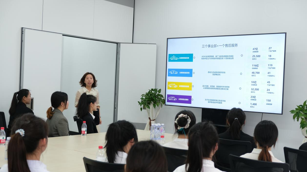 吴经理首先向同学们详细介绍了法雷奥集团在中国的发展布局、企业文化及核心业务模块,帮助学子深入了解企业运营并对汽车行业的发展趋势和人才需求有了更清晰的认识。