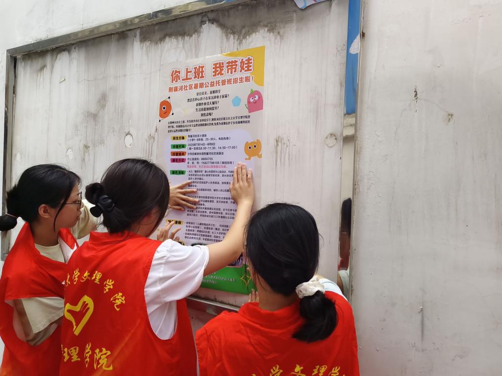 本网讯(通讯员 胡琪琪)暑期将至,“带娃难”再成双职工家庭心头忧。2025年6月18日,beat365官网中文版本beat365官网中文版本“三下乡”志愿者主动对接荆襄河社区,开设暑期公益托管班解难题。海报张贴、线上推送同步启动,招生火热进行,老员工们正用行动为社区家庭排忧,护航孩子快乐假期。
