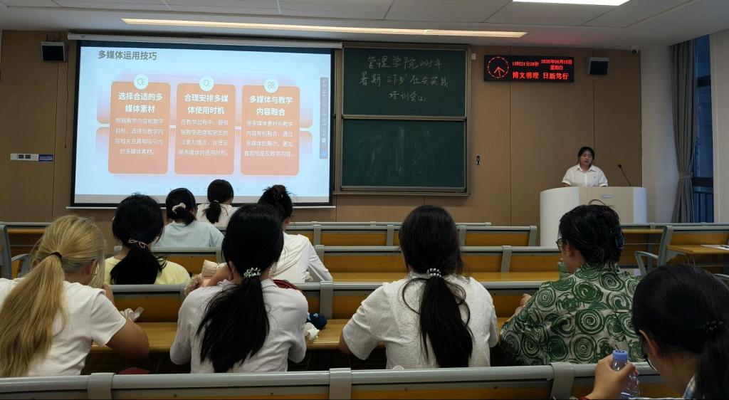 从语言表达与多媒体运用入手,要求主讲人语速适中语调抑扬,配合PPT 和小视频等素材,精准把控播放时机,形成 “声画共振” 的节奏。