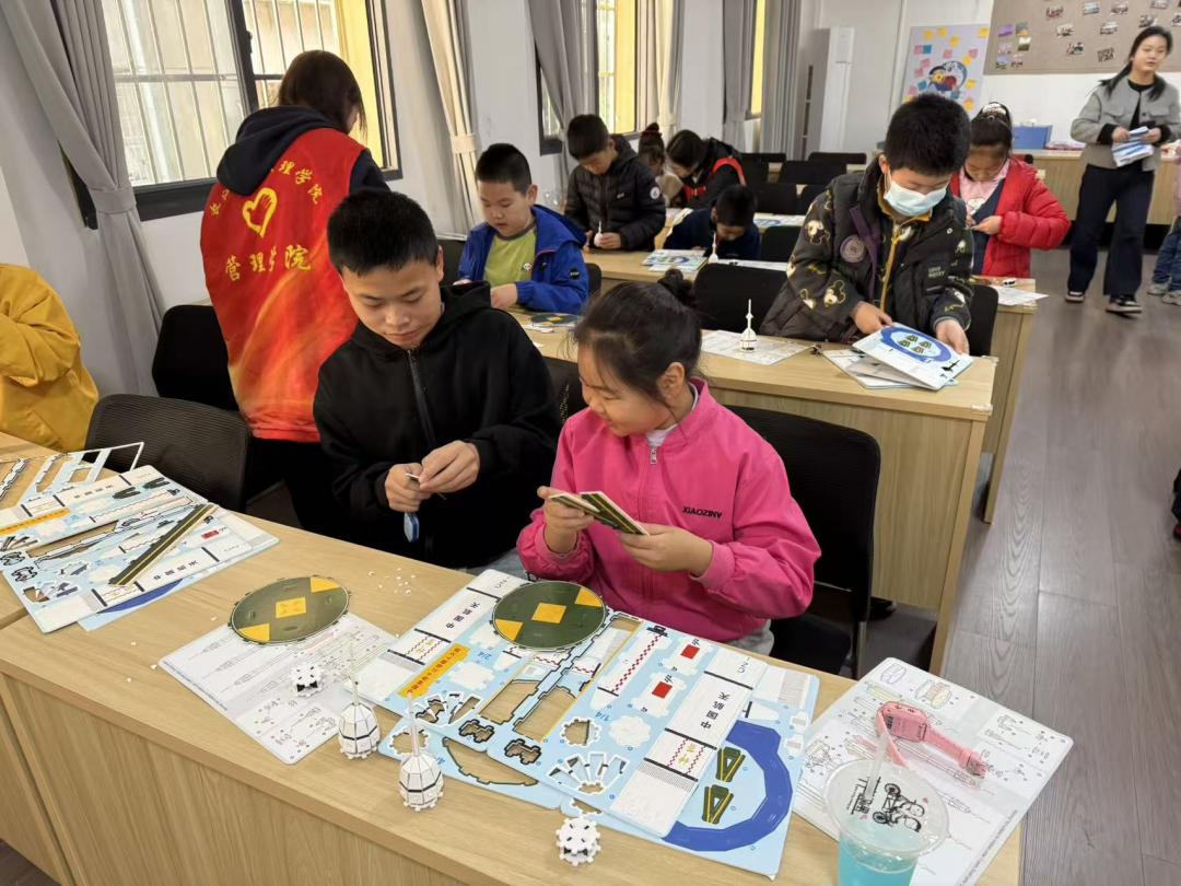 动手实践环节,小朋友们分组投入 “立体火箭” 拼图制作。大家细致拼接、默契协作,在充满趣味的实践中深化了对我国航天事业的认知,更真切体会到团队协作与科学探索的双重乐趣。