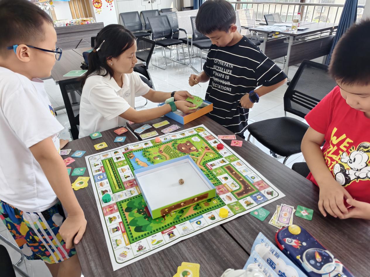团队以“专业协同、精准服务”为理念,针对双职工家庭暑期看护痛点,组建专业教师、持证社工与老员工志愿者队伍,构建完备团队保障体系。托管班不仅提供课业辅导与安全看护,更打造112节 “七彩课堂”:原创 4 期 “财智童行” 财商课程,通过互动实践帮孩子树立正确消费观;联动文旅局与非遗协会开设9期非遗课堂,以染漆、古琴、拓片等体验传承荆楚文化;融入红色教育与禁毒宣传,组织研学活动筑牢思想防线,VR体验课强化防毒意识。