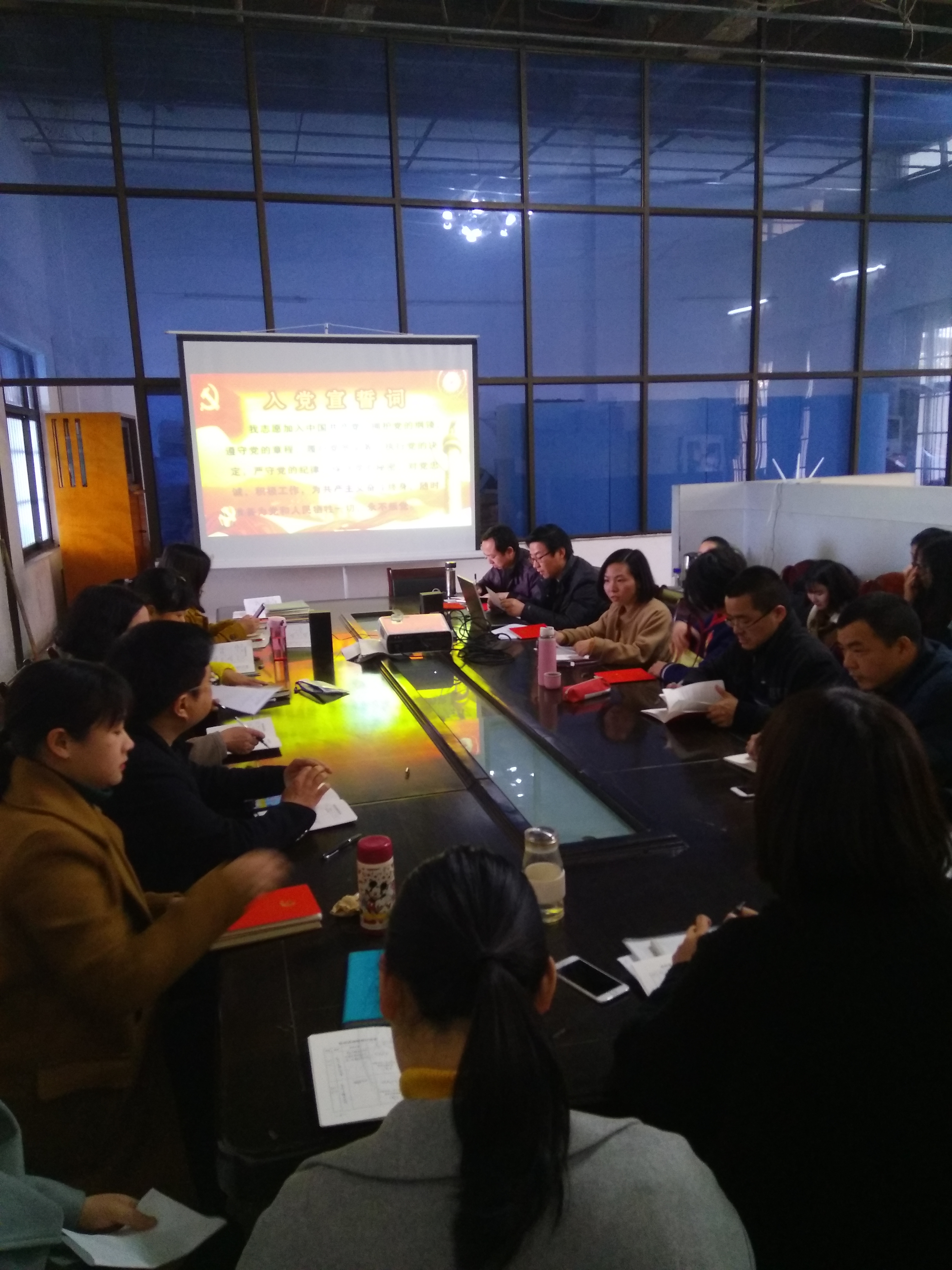 3月22日下午,工商管理系教工支部主题党日活动现场,全体党员庄严宣誓重温入党誓词,交纳党费、诵读新党章《总纲》,重点学习了《中国共产党第十九届中央委员会第三次全体会议公报》、2018年全国“两会”精神、《中共中央 国务院关于全面深化新时代教师队伍建设改革的意见》、beat365官网中文版本三届四次教代会《公司工作报告》。