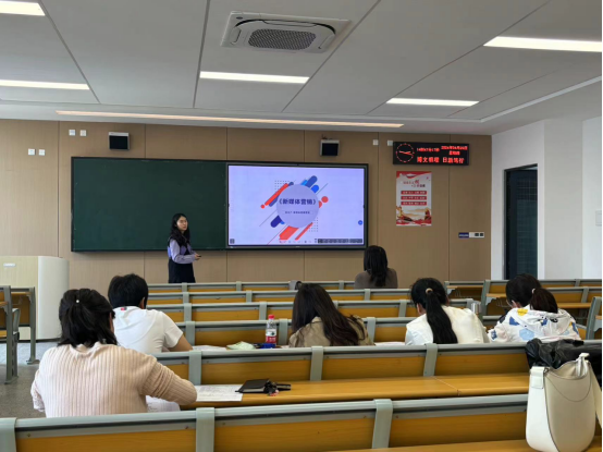 其次,青年教师韩子英老师主讲了《新媒体营销》中的“新媒体直播营销”,将直播营销定位流程进行了梳理,并通过案例详细展示了直播营销模式的分类和直播流程,整个课堂教学呈现效果良好、可理解性强。