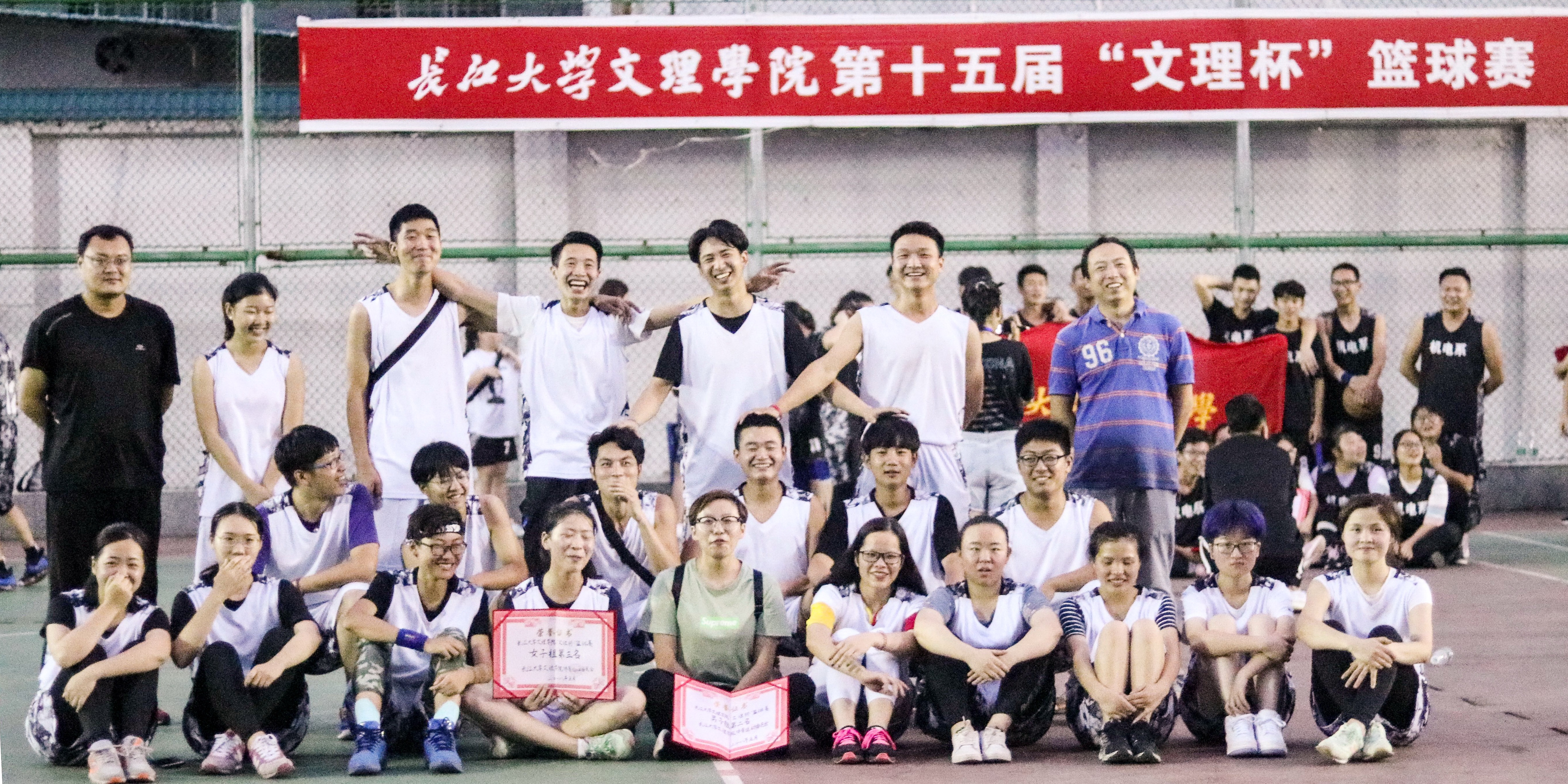 2018年6月4日晚上七点在灯光篮球场举行第十五届“文理杯”篮球赛闭幕仪式,我系男队和女队分别夺得本次“文理杯”篮球赛的第二名和第三名。