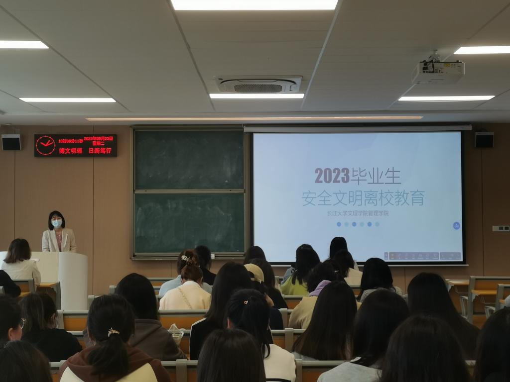 毕业季,毕业生的校园安全是员工工作的重中之重,通过开展安全文明离校及诚信还贷的主题班会,进一步,提高了员工的安全意识。愿毕业生此去繁花似锦,未来可期。
