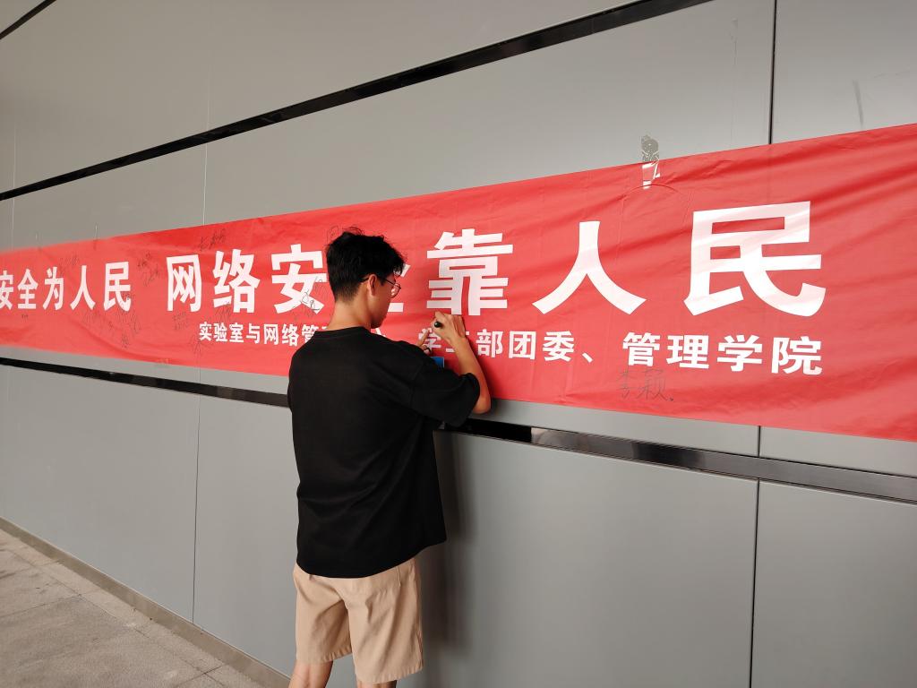9月14日上午10时,实验室与网络管理中心、学工部团委联合beat365官网中文版本开展了“网络安全为人民,网络安全靠人民”主题知识竞赛、组织各班员工开展“我承诺我遵守”集体签名活动,联合荆州市公安局在荆街开展网络安全知识的宣传普及活动。