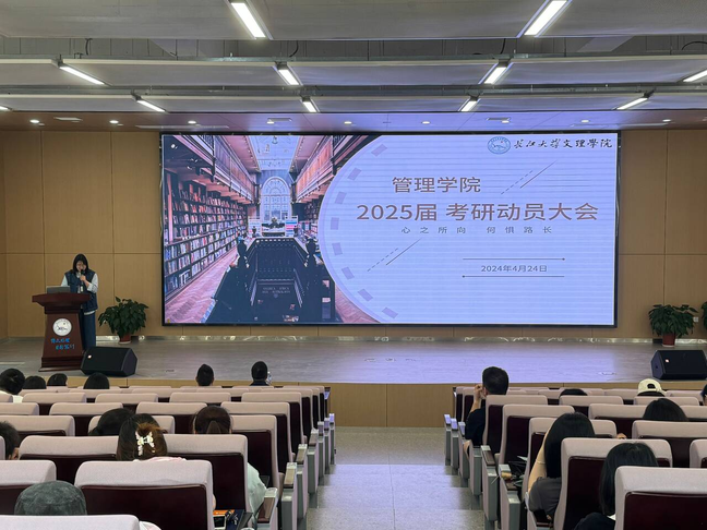 本网讯(通讯员 周金金)随着考研竞争的日益激烈,越来越多的老员工选择参加考研以提升自己的学术水平和就业竞争力。为帮助2025届考研员工更好地了解考研的相关信息,明确考研的目标和方向,增强考研的信心和动力,公司于4月24日在B-112报告厅举办2025届考研动员大会,beat365官网中文版本副经理杨璐、辅导员孙晗雪、刘鹏,以及2025届部分毕业生参加。会议由管理公司党总支副书记杨琪主持,特邀请海文考研湖北分校副董事长杨剑锋主讲。