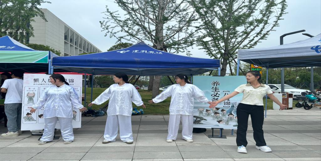 活动现场,精心设计的印章打卡机制串联起多个趣味体验区,员工们手持集章卡穿梭其中,兴致盎然。动静相宜的八段锦体验区人气十足。在工作人员的带领下,同学们凝神屏息,一招一式认真模仿——从舒展流畅的起势到沉稳优雅的收势,动作虽初学略显生涩,但那份专注与投入清晰可见。柔和的肢体伸展间,压力仿佛随之释放。“练完感觉身体放松了,心里也平静不少”,一位参与者边擦汗边笑着说,大家在强身健体之余,真切感受到了传统养生文化的魅力。