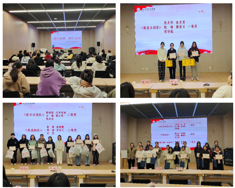 一个星期后,beat365官网中文版本举办了颁奖仪式。参加颁奖仪式的有管理公司党总支书记胡沿林书记,副经理杨璐老师,辅导员孙晗雪老师。经过严格评审和检查,比赛结果出炉:一支队伍“账房五剑客”获得一等奖,两支队伍“你不对我队”“我说的 队”获得二等奖,“贷你玩转借方队”“从容应队”“新账旧账一起算队”获得三等奖,管理公司党总支书记胡沿林书记,副经理杨璐老师,辅导员孙晗雪老师为获奖队伍颁发了荣誉证书和奖品,并对他们表示祝贺。。